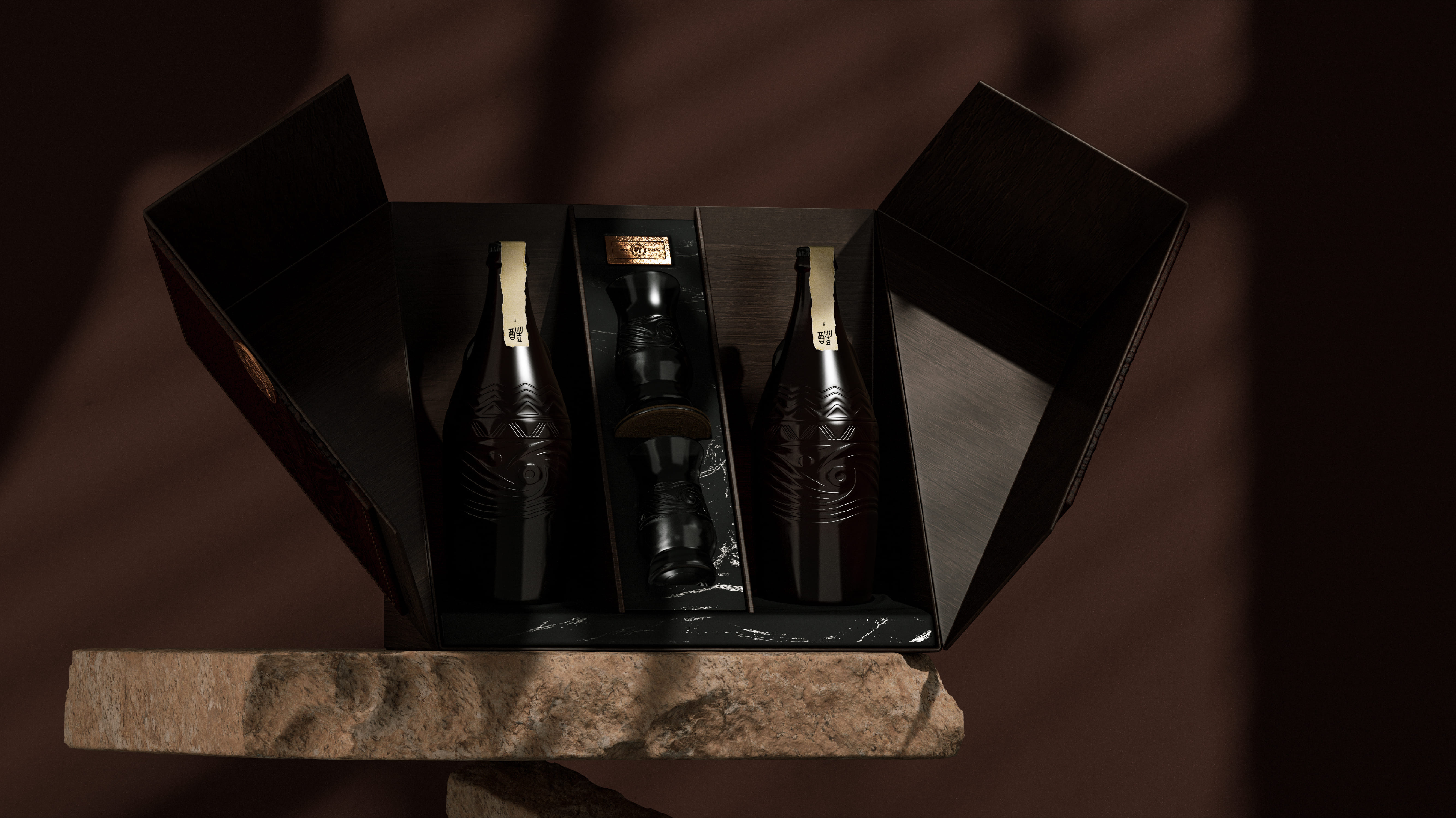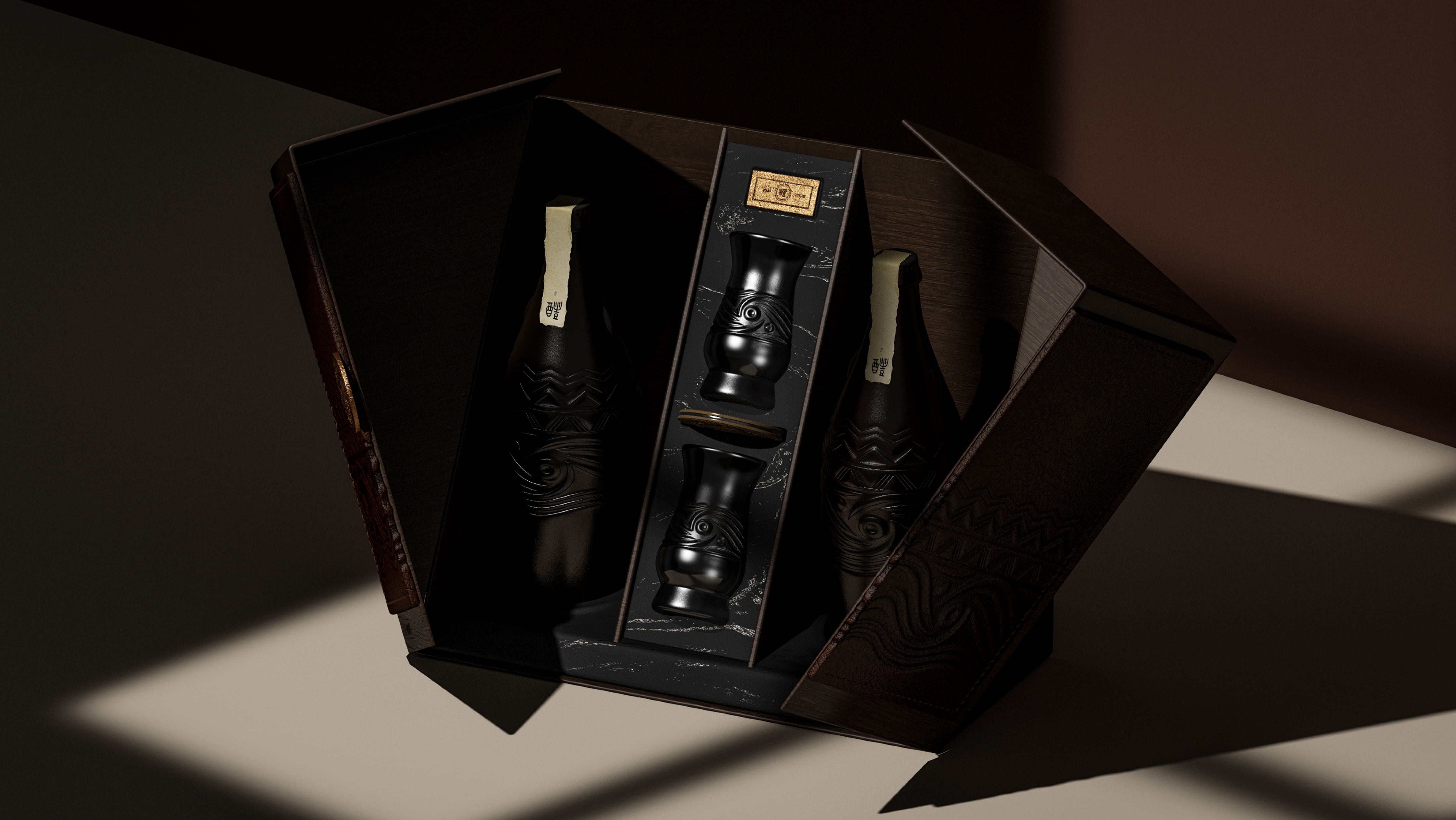 这款包装既符合现代时尚审美,又深度蕴含品质内涵。 结构创新:采用翼型展开盒的独特结构,开启过程充满仪式感,增强消费者体验记忆点。 质感营造:选用仿木质与仿皮革艺术纸作为主材,搭配金属圆形 LOGO 搭扣的精致装饰,从视觉与触觉上传递高端、大气的品质感。 价值传递:整体设计精准契合现代消费者对高品质产品的追求,有效传达华润雪花啤酒的品牌价值与文化内涵,实现审美体验与品牌表达的双重统一。